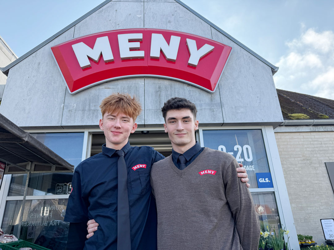 Annonce: Anthony og Lucas, der har været elever hos Meny i Kirke Hyllinge siden sommerferien, elsker omgangstonen og kundekontakten i butikken.